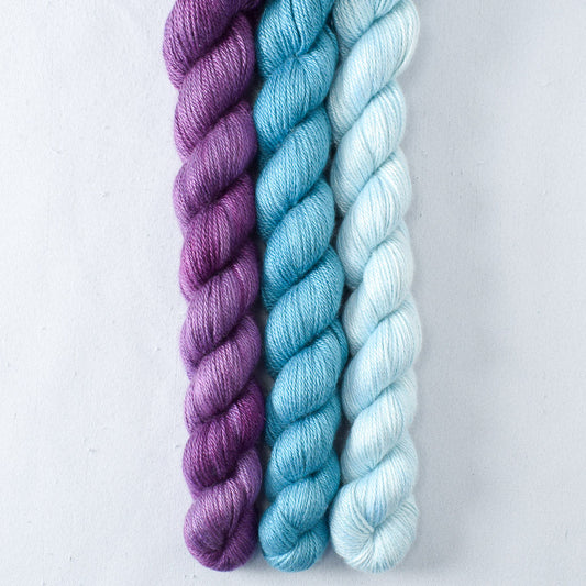 Three skeins of Sojourn, carefully chosen by our studio team for Andrea Mowry's The Shift cowl, or Joji Locatelli's 3 Color Cashmere Cowl pattern (sold separately). Sojourn is truly something special. Incredibly soft and sleek with a beautiful sheen from the silk and a gentle halo from the cashmere, Sojourn is our go-to yarn for luxurious accessories.