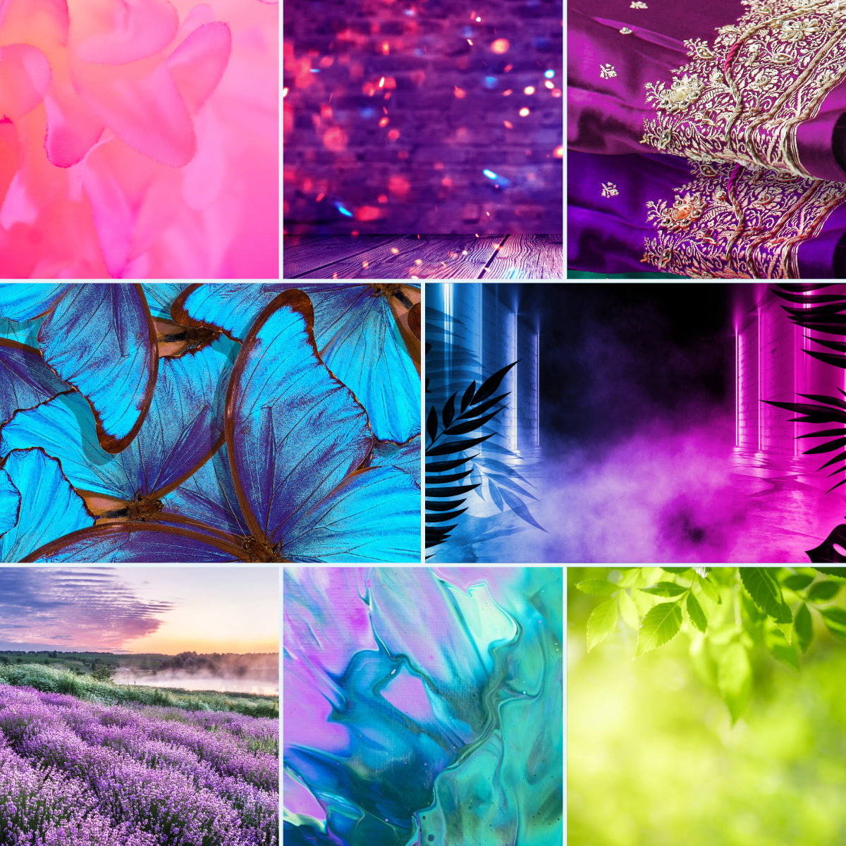 All the cool bright jewel tones we could magic up! You’ll see brilliant flower petals in rich pinks and purples, velvety regal violets and blues, clear lavender through jade, and leafy greens to round it out. If you’re looking for something bright and cheerful to carry you through winter’s darker days, this is the set for you.