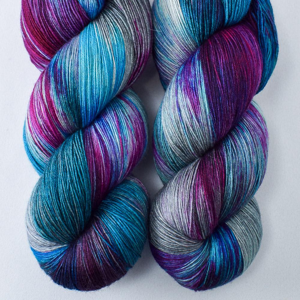 This colorway is a Babette: every skein and every batch is a bit different, but Babs has a method of recreating these artistic colorways. The photograph is an example of representative skeins from this colorway; the skein you receive may differ somewhat.