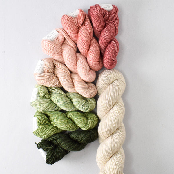 This colorway is a Babette: every skein and every batch is a bit different, but Babs has a method of recreating these artistic colorways. The photograph is an example of representative skeins from this colorway; the skein you receive may differ somewhat. If you have any questions about the color, please give us a call or email to ask for a photo - we are always happy to describe our current batch for you to make sure it meets your needs!