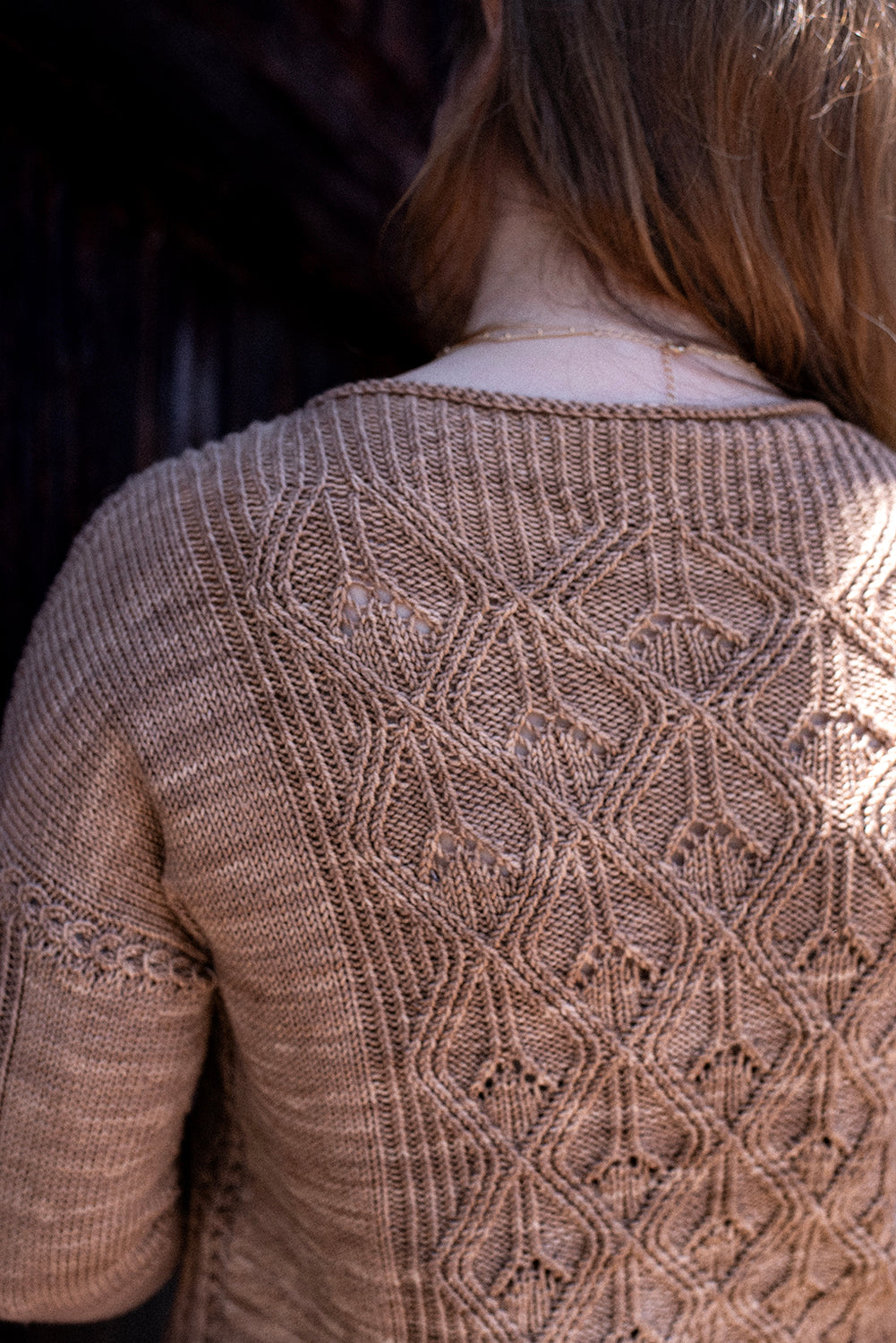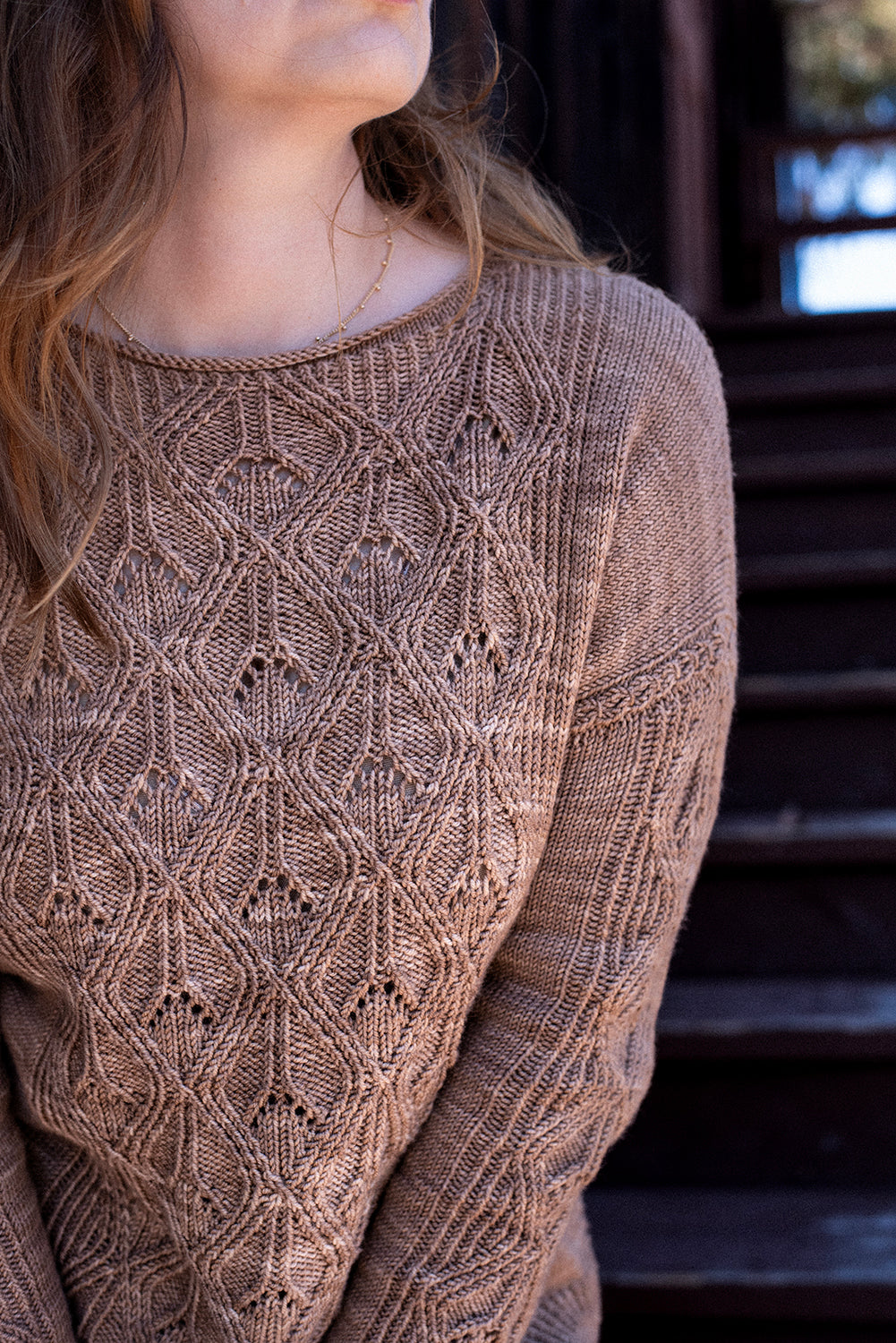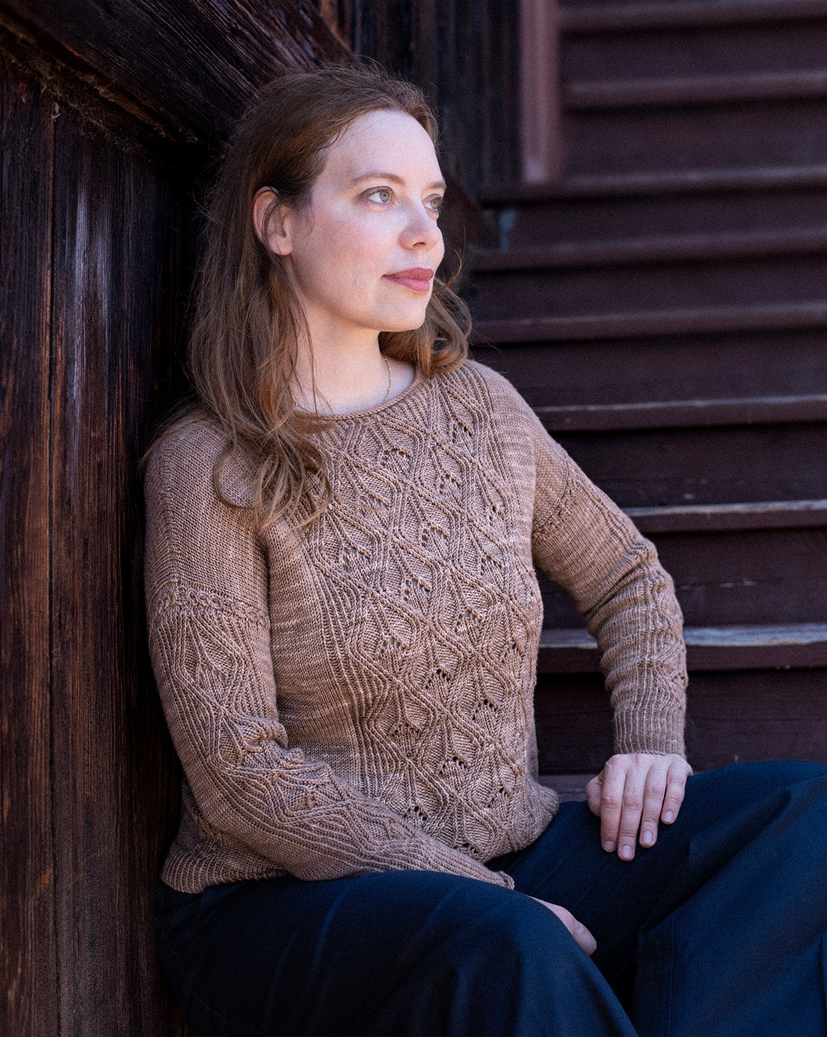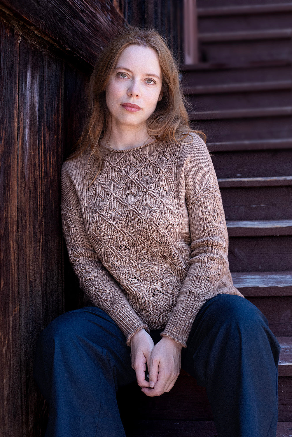 The Apato Pullover is a modern top-down sweater that blends clean stockinette fabric with striking twisted stitch cable panels. The design features bold vertical motifs on the front, back and sleeves, framed by simple lines that keep the look balanced and wearable. Worked seamlessly from the neckline down, Apato allows easy customization of body and sleeve length while maintaining a polished finish. With its flowing cables and versatile silhouette, this pullover is both engaging to knit and effortless to wear.