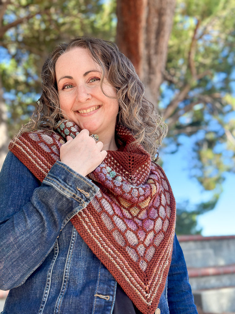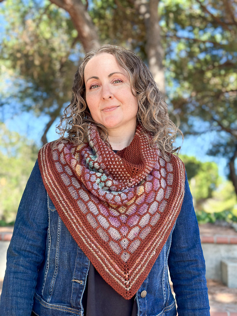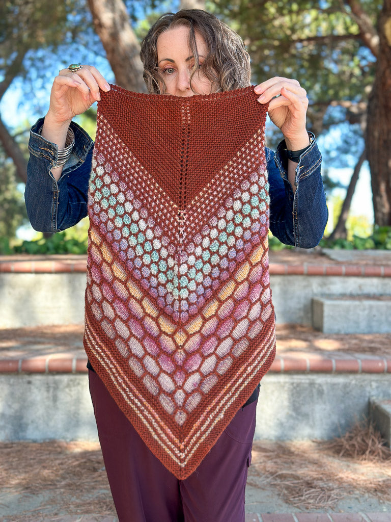 Camino Peak is a big cozy bandana cowl knit in two lofty yarns. As you work from the top down, little flecks of color-changing yarn grow to become bubbles, and then blocks, and finally you’ll finish off with a simple stripe. Slipped stitches are used to create the colorwork designs, and the changing colors and patterns will keep your interest. Cast on and soon you’ll be on your way! This bandana cowl is worked from the top down, beginning with a triangle worked flat, then joined to work in the round.