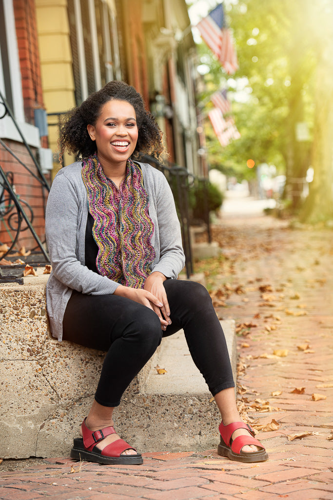 Catawba Falls Cowl is knit in the round featuring the popular fan and feather pattern updated with an elongated stitch for a more open effect. Estrellita’s bit of sparkle makes this cowl perfect for dressing up your favorite jeans and t-shirt or adding to your little black dress. And if the weather turns chilly, it is wide enough to pull down over your shoulders or wrap around your neck twice.
