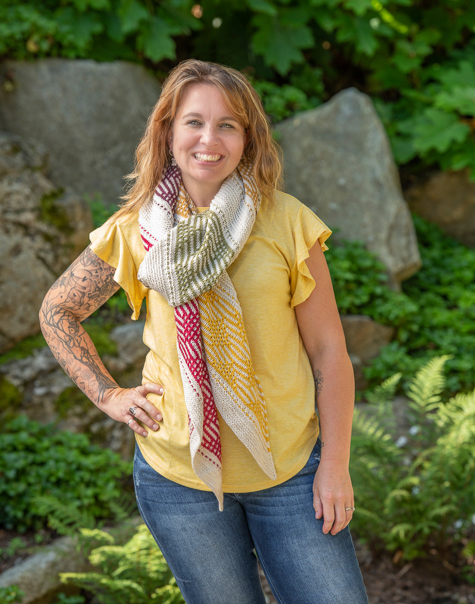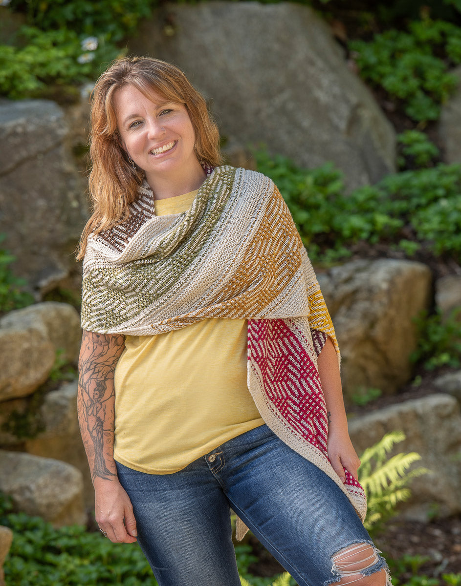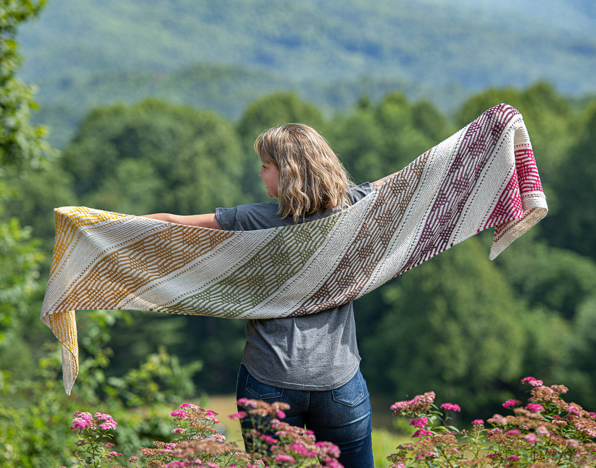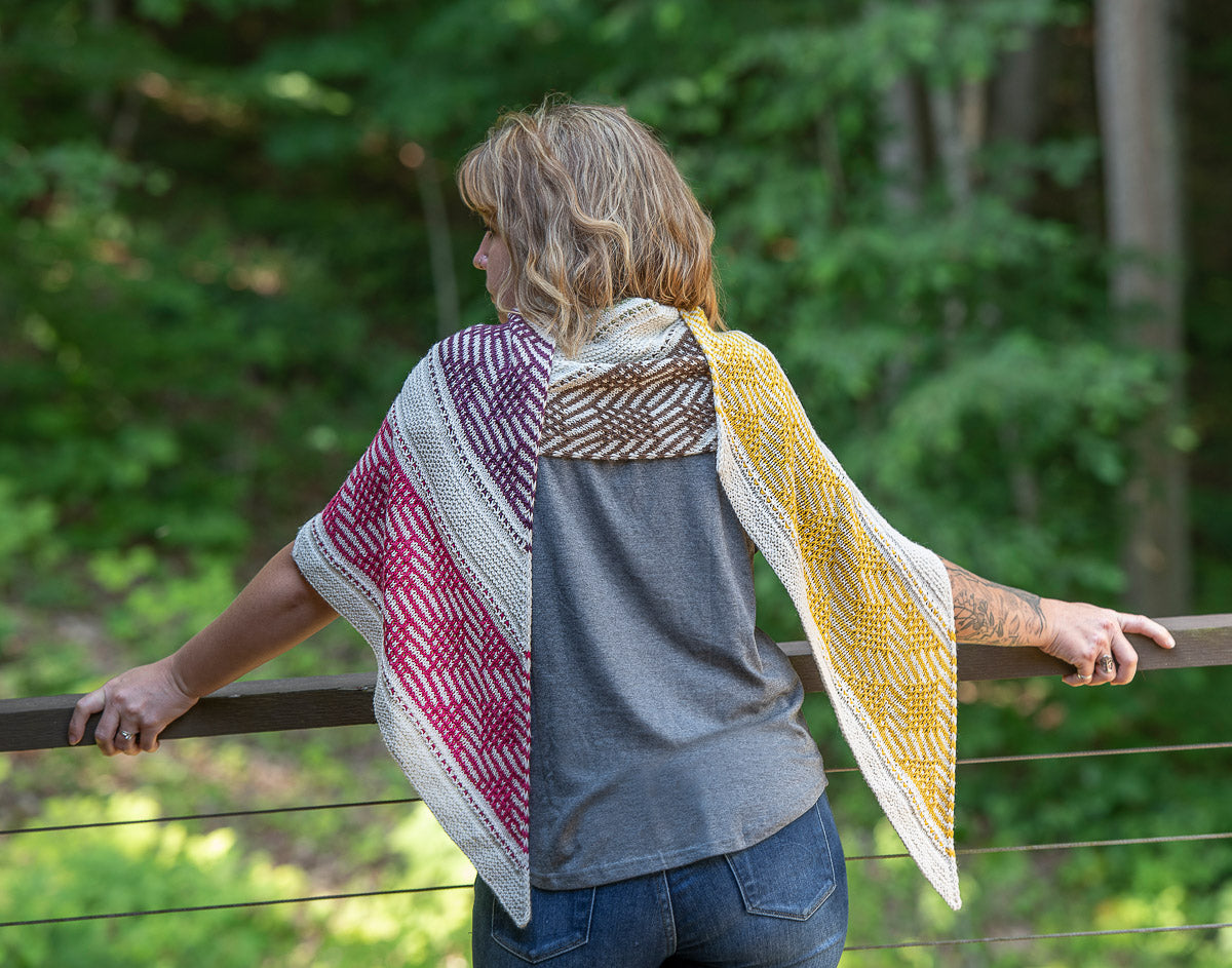 Looking for an intuitive knit with stylish results? Drifting Diamonds is a combination of stockinette stitch and garter stitch, with simple slipped stitches creating all of the glamour. Both the length and width of this fingering weight wrap can be customized to make the most of beloved yarn.