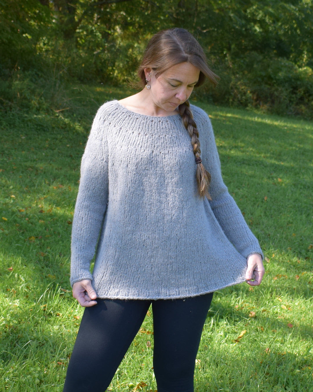 Seamless with the cutest sunburst detail of eyelet stitches, the Easy Eyelet Yoke Sweater is the perfect project for a knitter wanting to dive into their first seamless top down yoke sweater. Made with 1-3” of positive ease in mind, this sweater was designed for everyday wear. Simple and elegant, it can be dressed down with some ripped jeans and short booties, or dressed up to wear to the office.