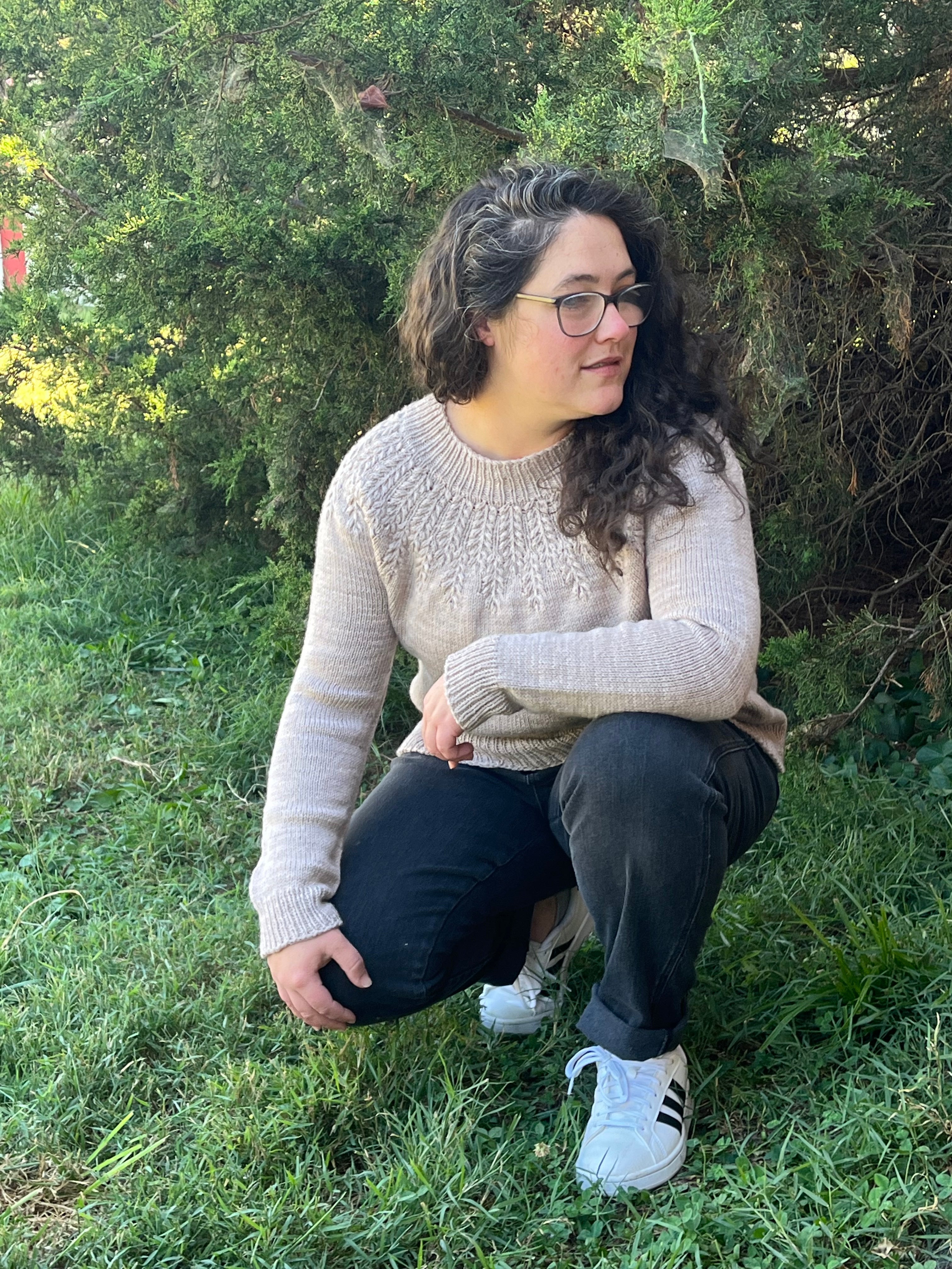 Field is a soft and fine sweater with a beautiful grain pattern on the yoke. It is made top down seamlessly in the round, and is perfect for both pants and skirts in every season.